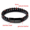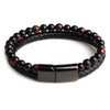 Neue Mode Herren-Schmuck – Naturstein-Echtes Leder-Armband mit Schwarzem Edelstahl-Magnetverschluss, Tigerauge-Perlen-Armband